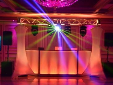 LED UpLights are customizable Lights that will be strategically placed around your venue to set the atmosphere for your event. These lights are state of the art & can be set to whichever color scheme you'd like!